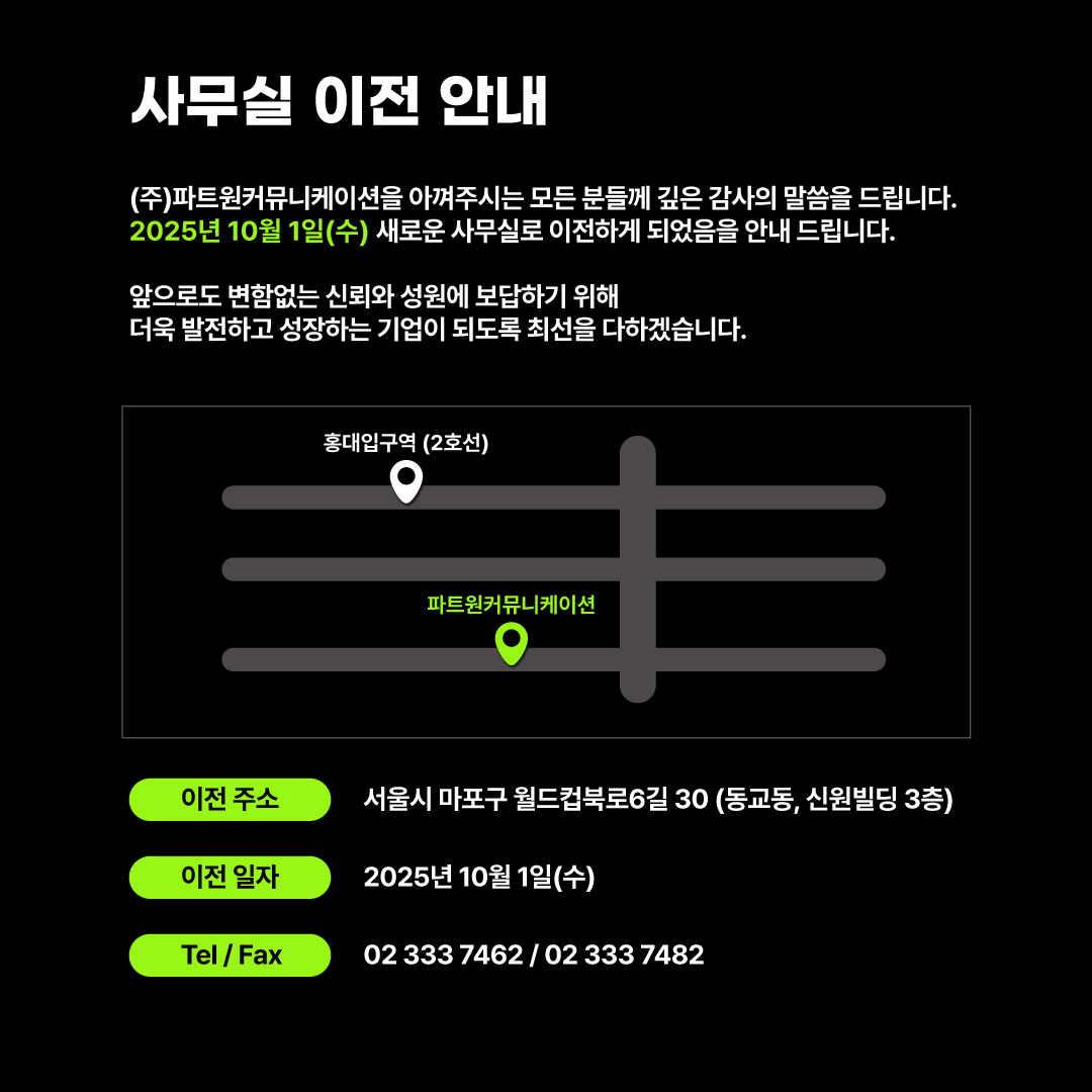 연락처: <전화번호> 02-333-7462, <이메일> part1@part1.co.kr, <팩스번호> 02-333-7482